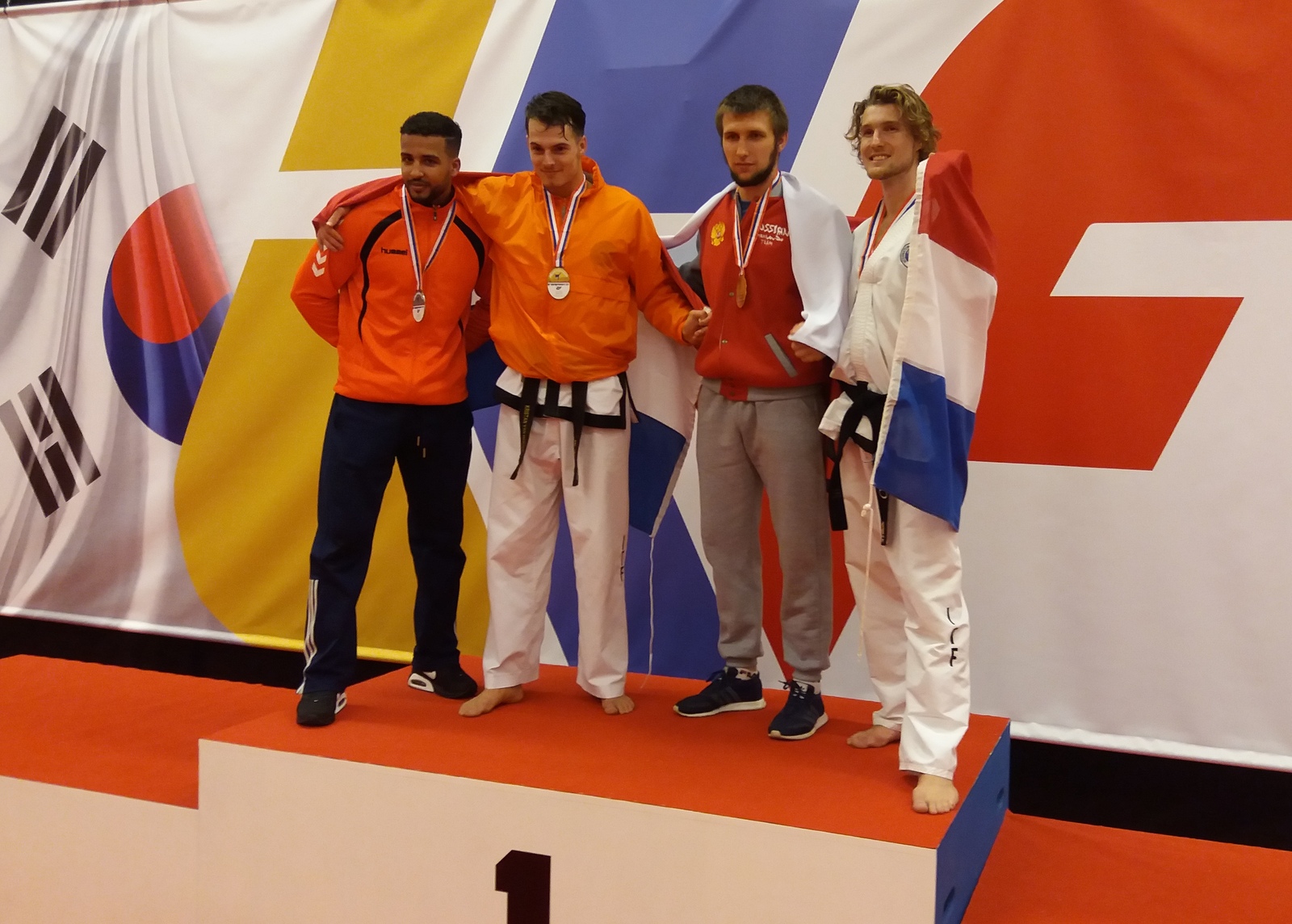 Chris Vos, 25 jaar uit Burgum, van taekwondo vereniging Art of Defence, wist beslag te leggen op de bronzen medaille sparring in de klasse senioren zwarte band 18-35 jaar -85 kilogram. Een loodzware poule met taekwondoka’s uit Rusland, Argentinië, Algerije, Canada, Engeland, Slowakije, België en Nederland. Er werd gevochten in het doorgaand systeem, waarbij 5 scheidsrechters de punten bijhouden. Na de wedstrijd wordt de winnaar bekend gemaakt.