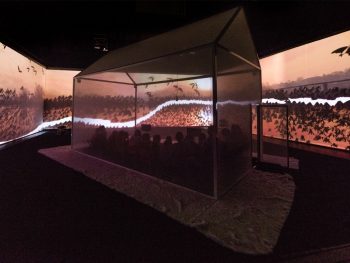 Een spectaculaire multimedia installatie – zonder spelers – die niet in een hokje (of huisje) te duwen valt, geprogrammeerd in De Lawei in het kader van Leeuwarden Fryslân 2018.