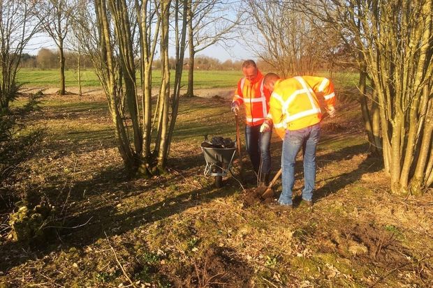 Inheemse bomen en struiken geplant op It Wildfjild bij Boelensloane