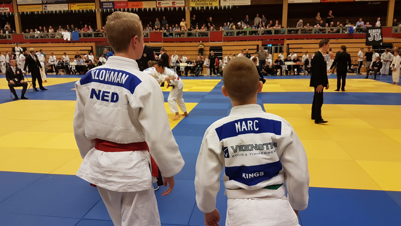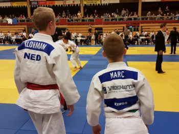 Met in totaal tien prijzen gingen de Judo Kings huiswaarts, een prima prestatie voor deze jonge club wedstrijd judoka’s. Op de foto staan Nathan Klokman en Marc Veenstra beide klaar voor hun eerst volgende wedstrijd.