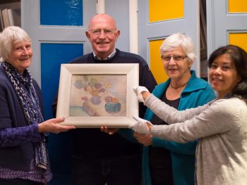 Uit de nalatenschap werden vervolgens nog twee schilderijen en een tekening van Jan Planting aangeboden. Het geheel is door de heer Wiebe Rinsema en zijn twee zusters overhandigd aan collectiebeheerder Ramona Dumas.