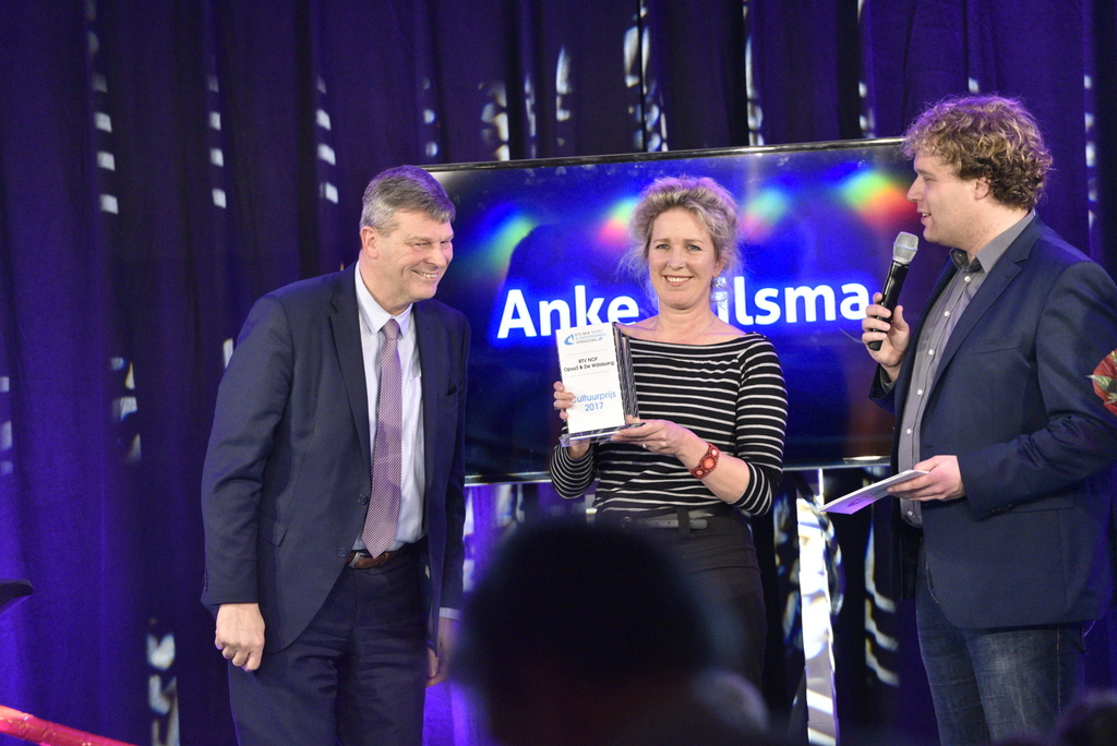 De kersverse burgemeester Klaas Agricola van Dantumadiel had de eer om de cultuurprijs uit te mogen reiken. Dit deed hij aan Anke Bijlsma, zij zat nietsvermoedend in de zaal. Bijlsma kreeg met de award waardering voor al haar culturele initiatieven. Zo is ze onder andere programmeur bij het programma ‘de Garnalefabryk’ in Moddergat, betrokken bij de ‘Dei fan de Fiskerij’, het Frysk Sjongers Gala, de kroegvoorstelling Kredyt en Krimp en actievoerster bij ‘Red de Sionsberg’.