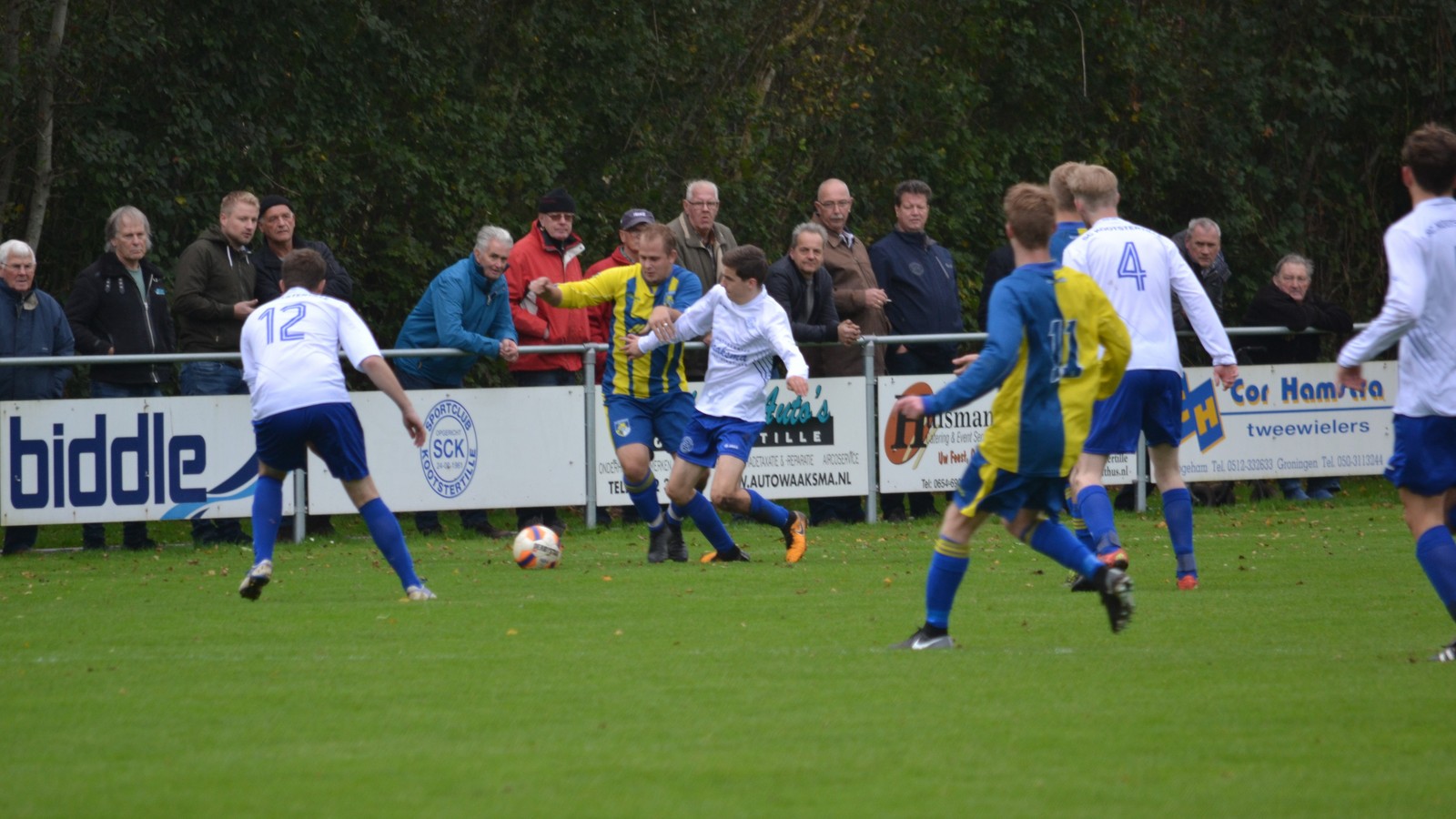 KOOTSTERTILLE – Het werd een boeiend streektreffen waarbij inzet de boventoon voerde en de arbiter een hoofdrol voor zich opeiste. Toen de kruitdampen waren opgetrokken was SC Kootstertille een zwaar bevochten 2-1 overwinning rijker en steeg het daardoor met stip naar plaats twee.