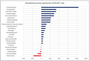 Afbeelding: ontwikkeling banen gemeenten 2016-2017 in Fryslân. Bron: werkgelegenheidsonderzoek 2017