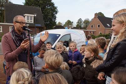 Van Mourik opende de opvoedweek door het onthullen van de auto waarop de laatste regels uit het gedicht ‘Mijn puntenslijper’ zijn geplakt. Gemeentedichter Andries de Jong schreef het gedicht speciaal voor de themaweek.