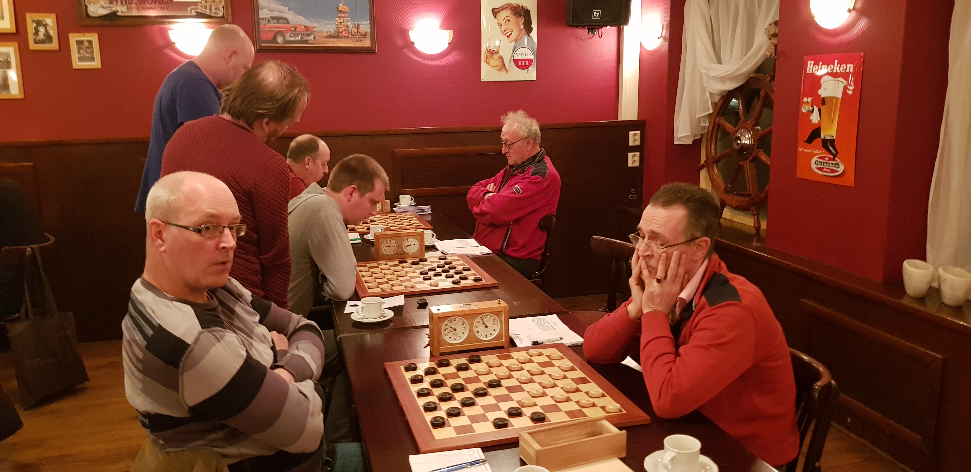 Aan bord vier was het Ate Oosterhof die niks onderdeed voor de Sneker Theo Diemer. Met een ratingverschil van 5 punten was remise een te verwachten uitkomst. Karel de Bruin aan de staart wist in een zeer nadelig eindspel nog wel door te breken naar dam. Tegenstander Marcel de Vries bewaarde echter zijn geduld, haalde 2 dammen en let Karel nog enige tijd spartelen. Uiteindelijk was de winst voor Marcel. De uitslag van de laatste pot was niet meer van belang voor de einduitslag.