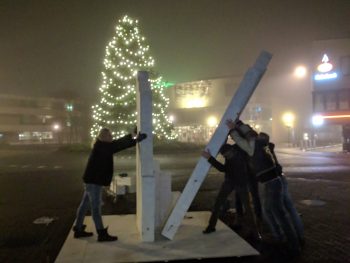 DRACHTEN – Vanaf vrijdag staat de twaalfde CH2018-fontein al in Drachten. Het ontwerp draagt de naam ‘Vierkant in vierkant’. Het is een ontwerp van Theo van Doesburg, samen met Jan Wils. Zij deden in 1917 mee aan een ontwerpwedstrijd voor een fontein bij het station in Leeuwarden.
