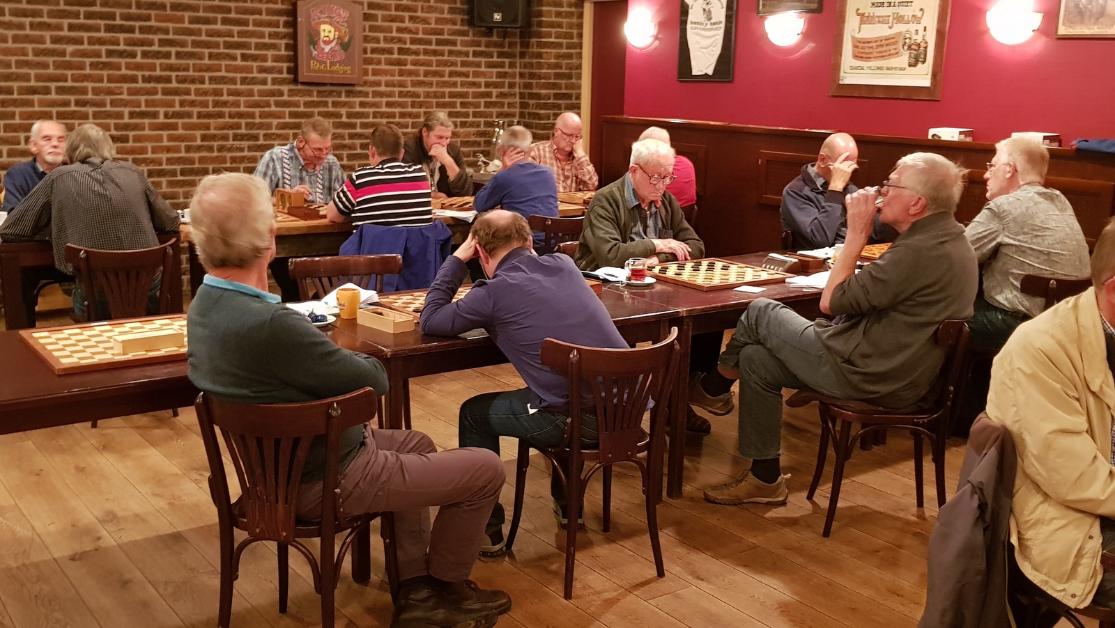In het achterste deel van de zaal werden nog een zevental wedstrijden afgewikkeld voor de onderlinge competitie.