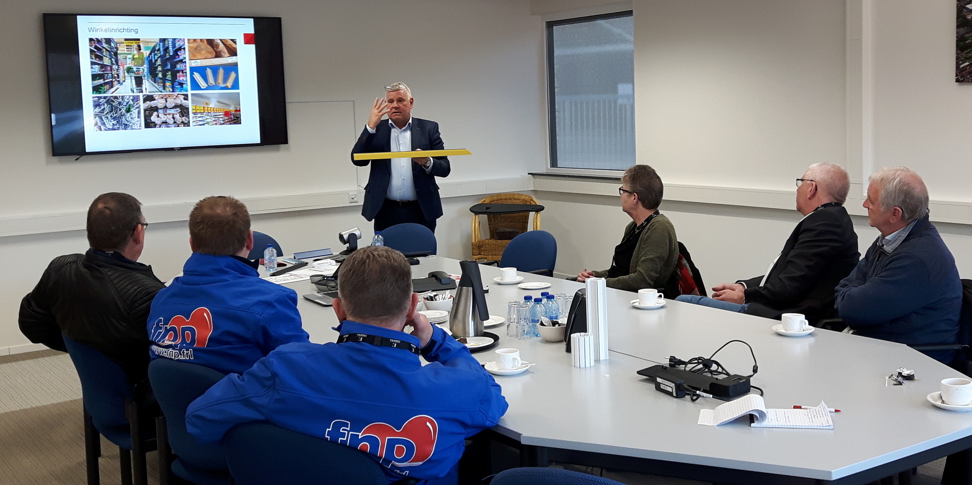 Nei de kofje liede de hear Schootstra de delegaasje fan FNP Achtkarspelen rûn troch it fernijde bedriuw en demonstrearre de wurking fan it bedriuw. De FNP’ers betanken Schootstra dêrnei mei in typysk FNP kado foar de nijsgjirrige wurkbesite.